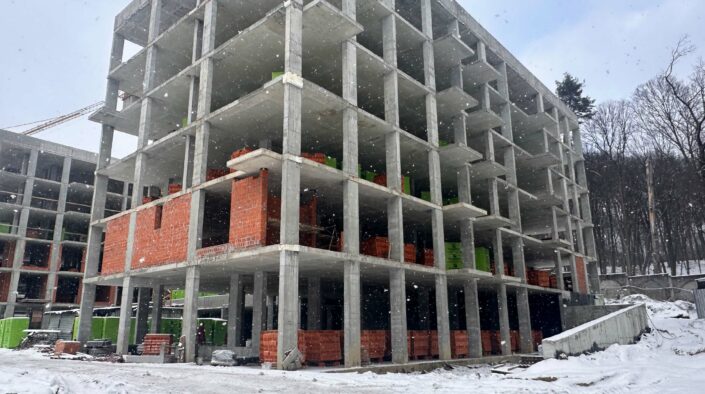 У секції № 12 ЖК «Грінвуд-3» триває мурування зовнішніх стін на 1-му поверсі. Наразі ці роботи виконано на 10%.