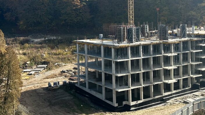У секції № 20 ЖК «Грінвуд-2» завершено армування та бетонування плити перекриття 3-го поверху. Наразі триває влаштування вертикальних конструкцій 4-го поверху.