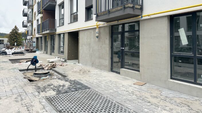 Біля секцій № 13 та № 14 «Грінвуд-2» продовжується монтаж бордюрів та мощення бруківки. Наразі ці роботи виконано на 60%.