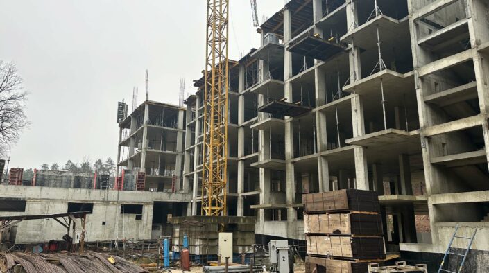 У секції № 21 ЖК «Грінвуд-2» завершено влаштування вертикальних конструкцій 4-го поверху. Наразі виконано монтаж опалубки на плиту перекриття 4-го поверху та триває її армування.