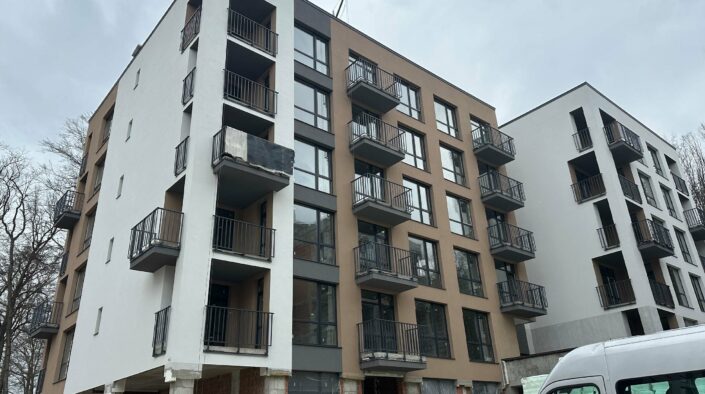 У секції № 9 ЖК «Грінвуд-3» завершено влаштування фасаду на 1-му – 5-му поверхах. Паралельно завершено монтаж огороджень на балконах. Наразі розпочато утеплення на торці з південно-західної сторони у секції № 10.