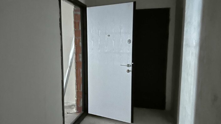 У секції № 10 ЖК «Грінвуд-3» завершено встановлення дверей до квартир на 2-му – 5-му поверхах. Паралельно виконано влаштування стяжки на всіх поверхах.