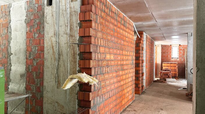 У секції № 10 ЖК «Грінвуд-3» завершено мурування внутрішніх стін на 2-му поверсі. Наразі ці роботи тривають на 1-му поверсі.