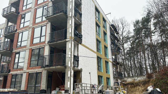 У секції № 9 ЖК «Грінвуд-3» завершено утеплення мінеральною ватою та пінополістиролом на торці з західної сторони будинку. Наразі триває підготовка до його армування.