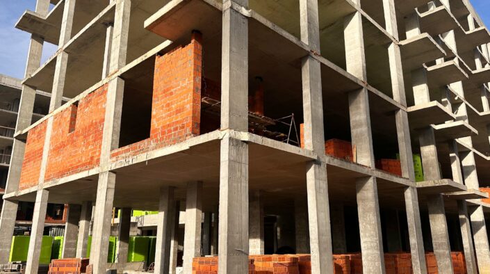 У секції № 12 ЖК «Грінвуд-3» триває мурування зовнішніх стін на 1-му поверсі. Паралельно триває влаштування 2-го шару гідроізоляції на покрівля секції № 10.