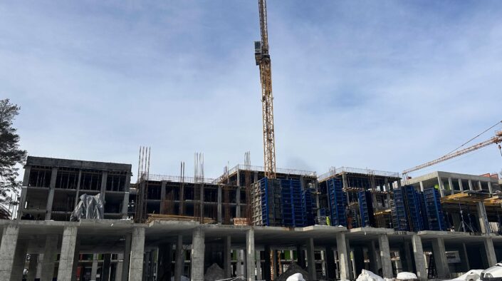 У секції № 6 ЖК «Грінвуд-3» триває армування вертикальних конструкцій 2-го поверху. Паралельно триває монтаж опалубки на плиту перекриття 1-го поверху в секції № 8.