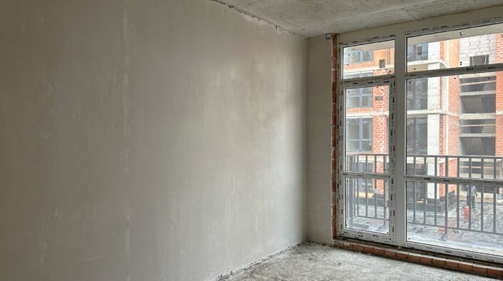 У секції № 9 ЖК «Грінвуд-3» завершено штукатурення стін на 1-му – 2-му поверхах. Наразі ці роботи тривають на 3-му поверсі.