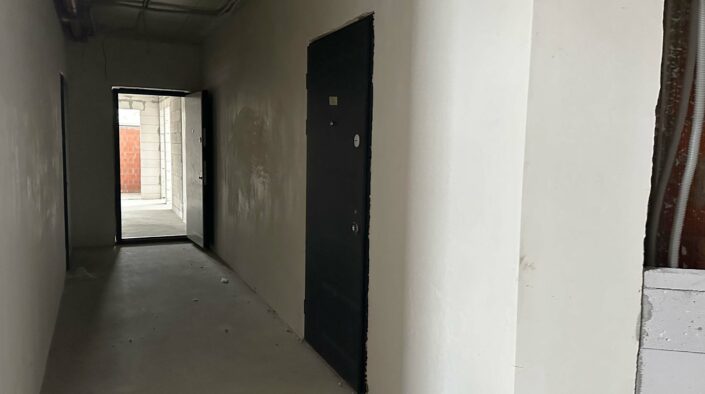 У секції № 4 ЖК «Грінвуд-4» продовжується встановлення дверей до квартир на всіх поверхах. Паралельно розпочато влаштування плитки на підлогу балконів.