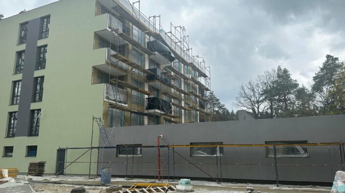 У секції № 6 ЖК «Грінвуд-4» на частині фасаду завершено декоративне оздоблення. Наразі тривають роботи з утеплення на північно-східній стороні.