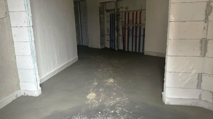У секції № 5 ЖК «Грінвуд-4» виконано влаштування стяжки підлоги у квартирах і МЗК на всіх поверхах. Паралельно до завершення йдуть роботи з встановлення дверей до квартир.
