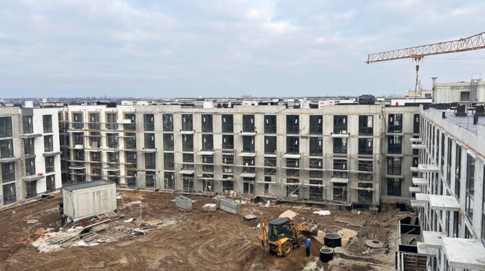 У другому будинку ЖК «Парксайд» триває утеплення фасаду з внутрішньої сторони у секції № 2. Паралельно продовжуються роботи з декоративного оздоблення із зовнішньої сторони у секції № 1.