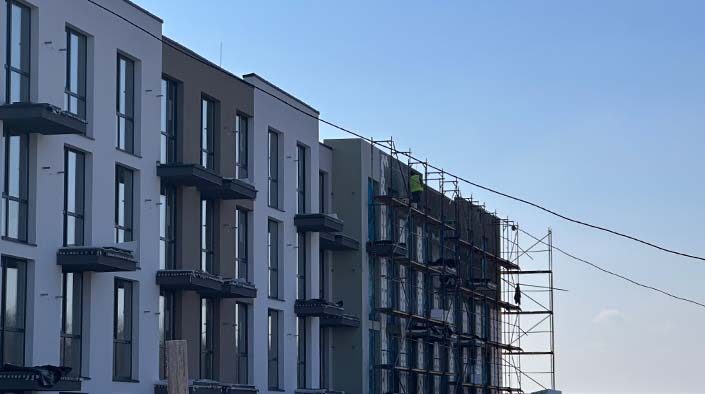У другому будинку ЖК «Парксайд» триває армування фасаду із зовнішньої сторони у секції № 1. Паралельно продовжується утеплення фасаду з внутрішньої сторони у секції № 2.