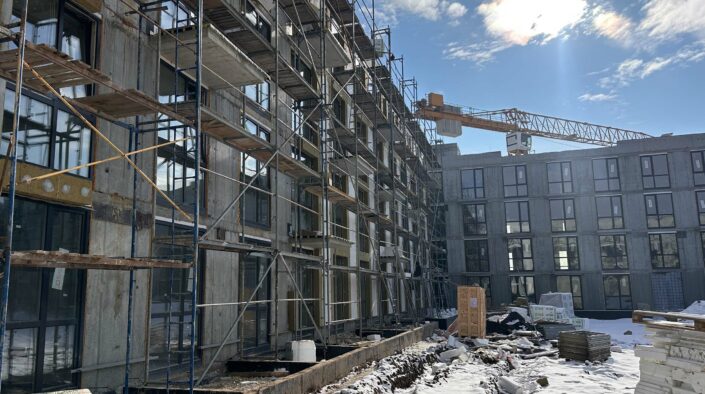 У другому будинку ЖК «Парксайд» продовжується утеплення фасаду з внутрішньої сторони у секції № 2. А саме: мінеральною ватою в комбінації з пінополістиролом.
