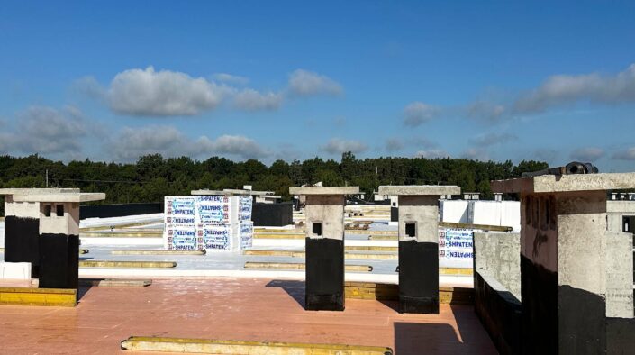У другому будинку ЖК «Парксайд» завершено праймерування та влаштування рулонної пароізоляції на покрівлі у секції № 4. Наразі тривають роботи з утеплення покрівлі.