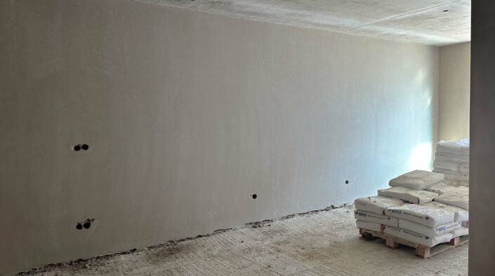 У другому будинку ЖК «Парксайд» триває штукатурення стін на 2-му та 4-му поверхах у під’їзді 1 в секції № 2. Паралельно завершено влаштування стяжки на покрівлі.