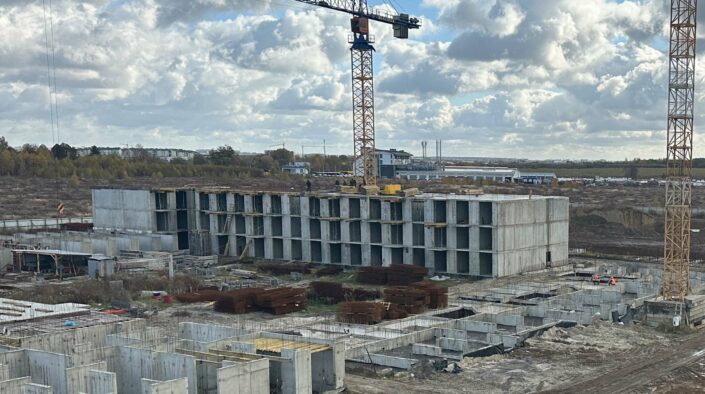 У третьому будинку ЖК «Парксайд» завершено монтаж опалубки на плиту перекриття 3-го поверху. Наразі триває армування та бетонування плити перекриття 3-го поверху.