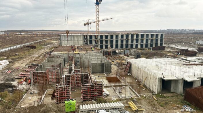 У третьому будинку ЖК «Парксайд» триває влаштування вертикальних конструкцій 1-го поверху у секції № 2. Паралельно завершено бетонування плити перекриття 3-го поверху у секції № 3. Наразі триває монтаж опалубки на плиту перекриття 1-го поверху у секції № 2.