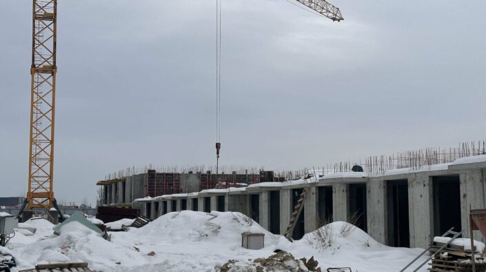 У третьому будинку ЖК «Парксайд» продовжується бетонування вертикальних конструкцій 2-го поверху в секції № 2. Паралельно на частині секції триває монтаж опалубки на плиту перекриття 2-го поверху.