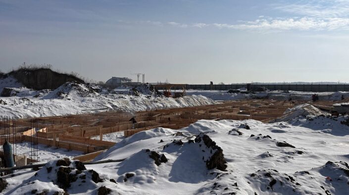 У п’ятому будинку ЖК «Парксайд» триває монтаж опалубки стрічкового фундаменту у секції № 4. Паралельно на одній з частин виконано бетонування стрічкового фундаменту в секції № 3.