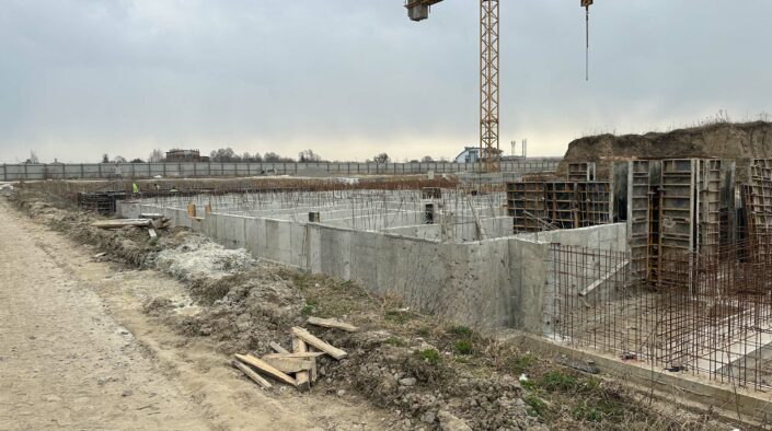 У п’ятому будинку ЖК «Парксайд» продовжується триває бетонування стін фундаменту у секції № 1. Наразі ці роботи розпочато секції № 2.